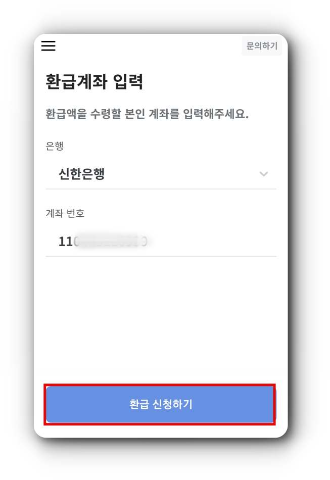 (5) 환급받을 계좌번호를 입력합니다.