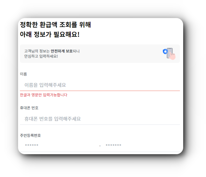 (5) 정확한 환급액 조회를 위해 개인 정보를 입력합니다.