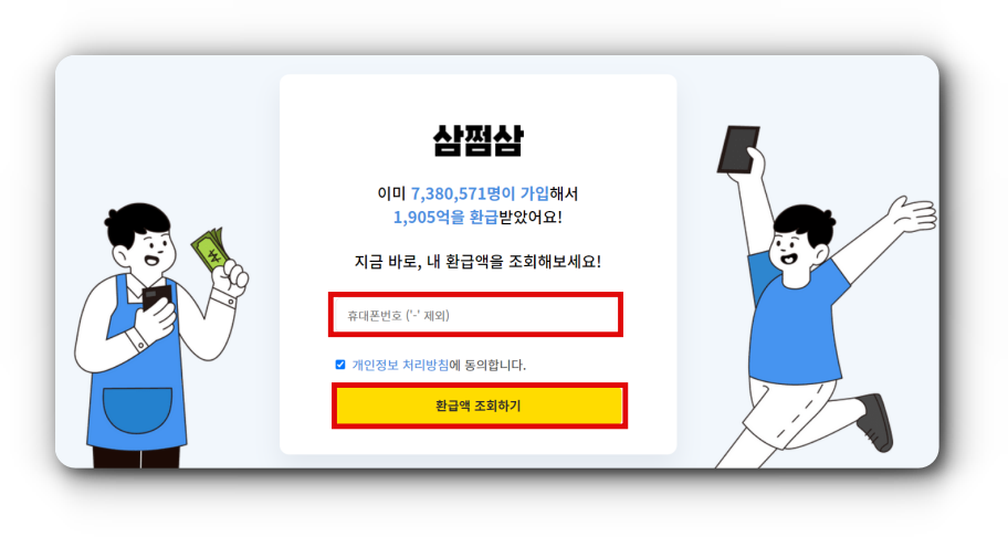 프리랜서, 플랫폼 노동자, 1인 사업자 등과 같이 종합소득세 신고를 하는 분들이 삼쩜삼 서비스의 대상자입니다. 하지만 연말정산 대상자이면서 동시에 부업을 하는 근로자들도 대상자에 포함이 됩니다. 그러다보니 생각보다 많은 사람들이 서비스 대상자에 들어가게 됩니다. 우선 환급금 조회는 비용 없이 간단하게 전화번호만 입력하고 카카오톡 아이디로 로그인을 하면 조회가 가능하니 아래 내용 확인하셔서 조회해보시는 것을 추천드립니다.
