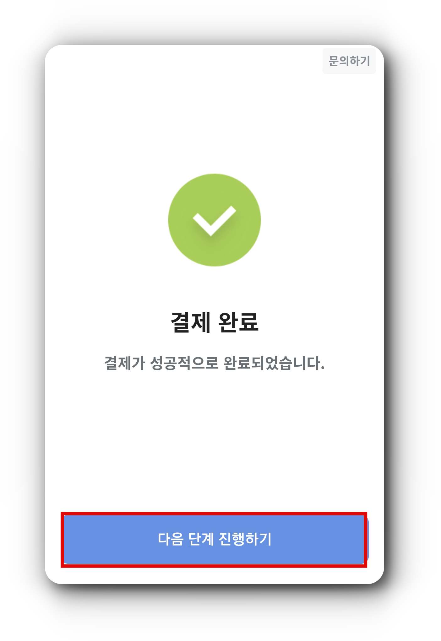 (3) 결제 완료가 되었습니다. 다음 단계 진행하기를 클릭합니다.